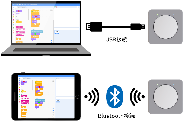 パソコンやタブレットに接続してすぐにプログラミング可能