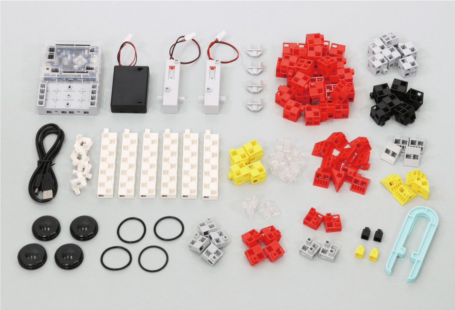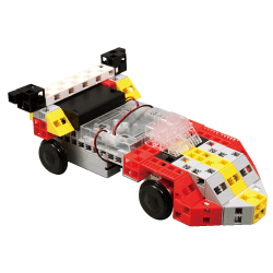 モーターを使って自由に走り回る車型のロボットがつくれます。