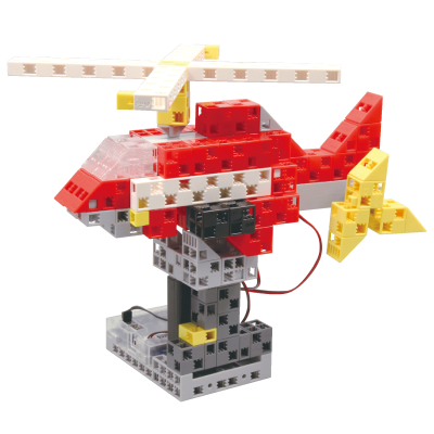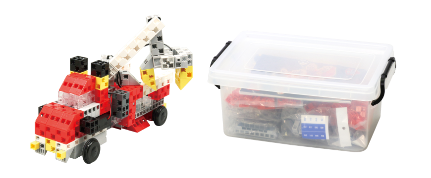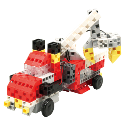 リアルな動きをする恐竜ロボットや、乗り物のロボットなどがつくれます。