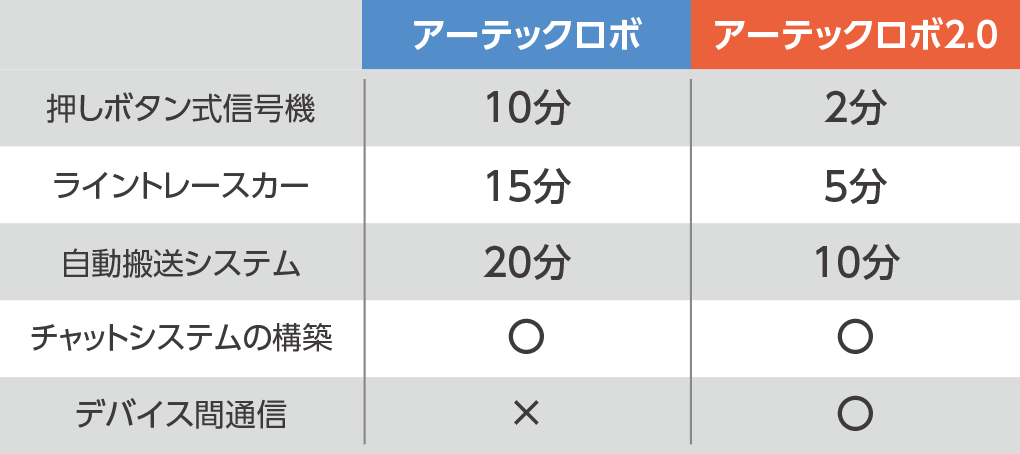 ロボットの組み立てにかかる時間(目安)