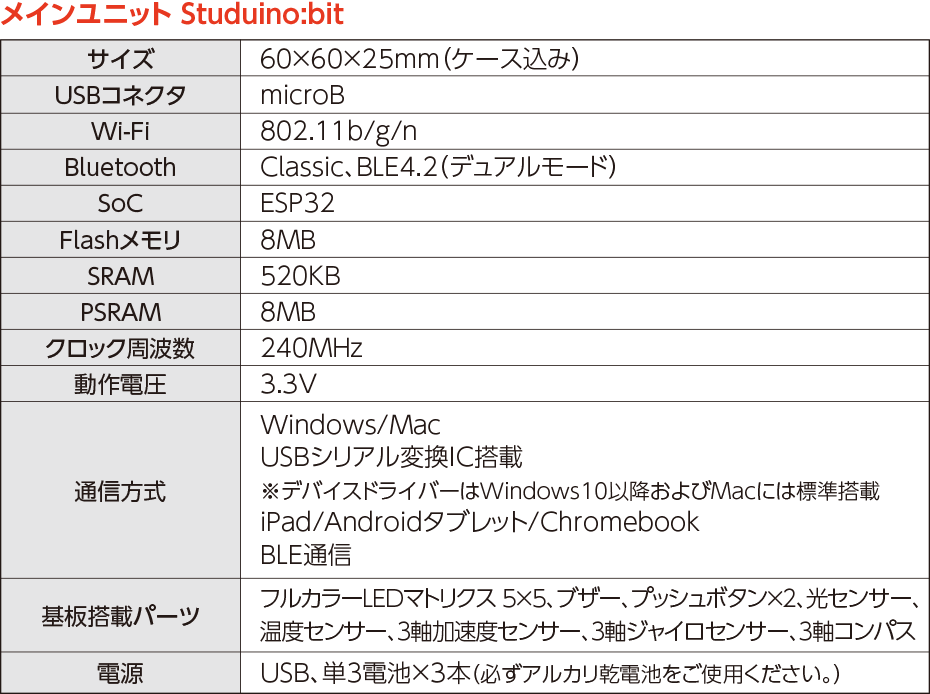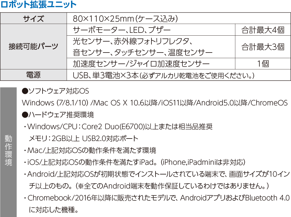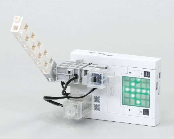 パーツの接続や組み立てをせずにメインユニット内蔵センサーやフルカラーLED、ブザー使用できます。