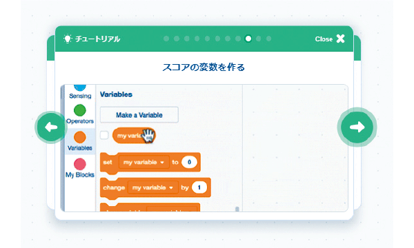 ソフトウェアの基本操作や作品の製作方法を、画面上のチュートリアルにしたがって学習できます。