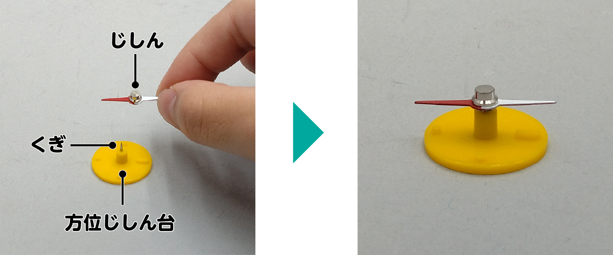 準備「極」を調べるための、方位じしんをつくりましょう。