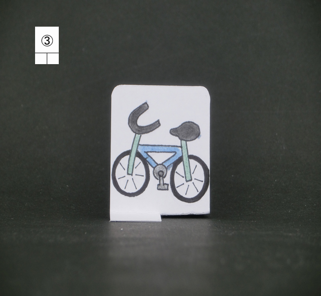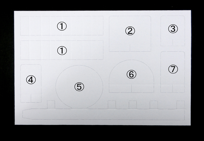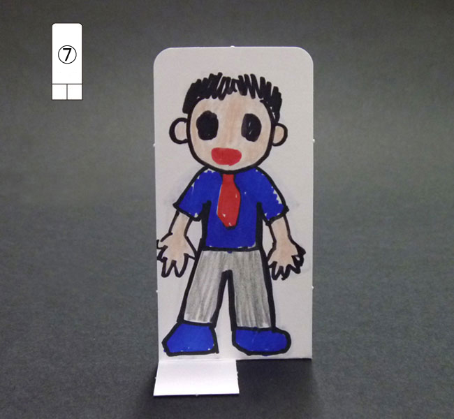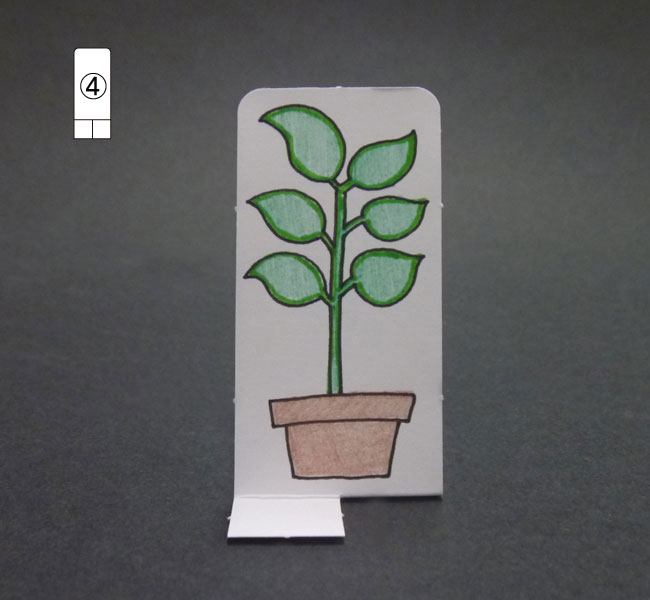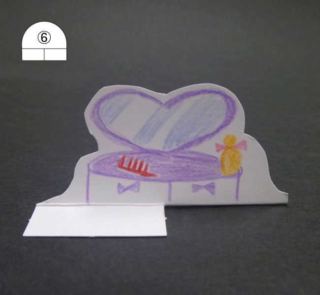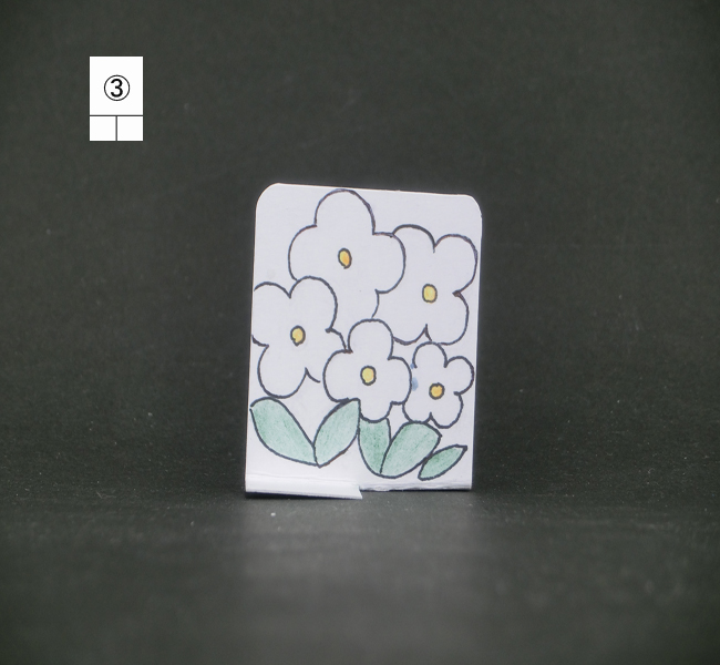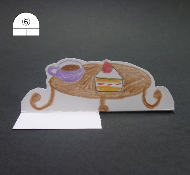 ②、③、④、⑥、⑦のシートはそれぞれ赤線部分を交互に折ると立たせることができます。