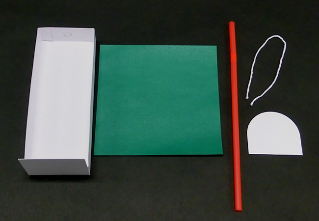 用意するもの:箱B、色がみ、ストロー、たこ糸、「ともだちハウスシート⑥かまぼこ型のシート」