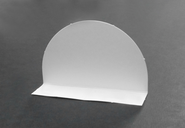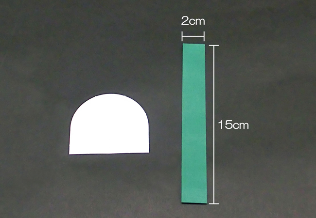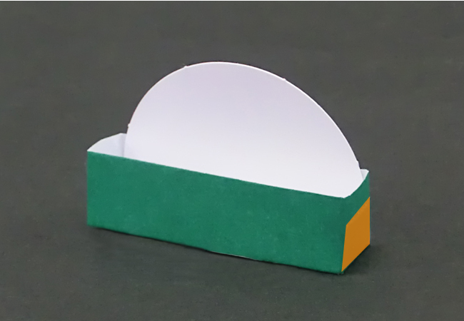 ⑦「⑥かまぼこ型のシート」の形に合わせて色がみに折り目をつけ、形を補強するためにセロハンテープで固定します。