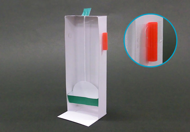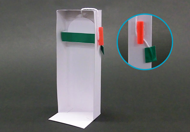 ④箱Bの側面に、短く切ったストローをセロハンテープで貼りつけて、完成です。