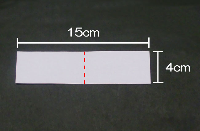 ①切った色がみをタテに半分に折り、真ん中に折り目をつけます。