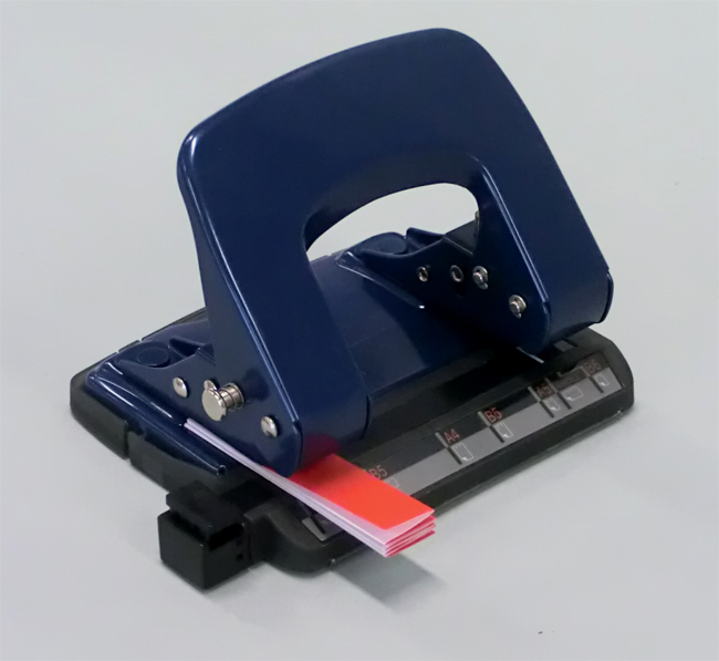 ①色がみをじゃばらに折り、穴あけパンチで穴をあけます。
