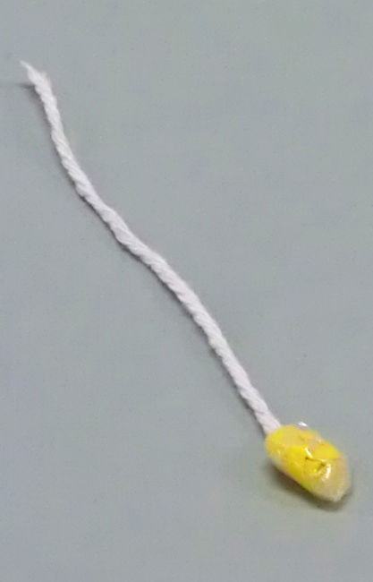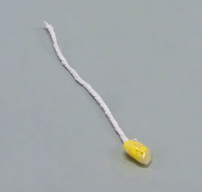 ①たこ糸の先に色がみを巻き、セロハンテープで貼りつけ、電球をつくります。