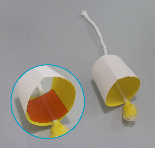 ②色がみでかさをつくり、電球が落ちないようにセロハンテープを貼って、完成です。