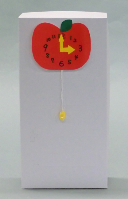 ②色がみで時計をつくり、裏にふりこのたこ糸を貼って、完成です。