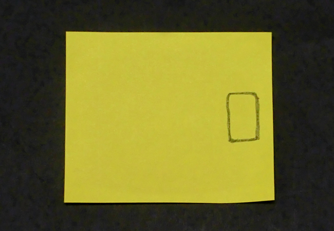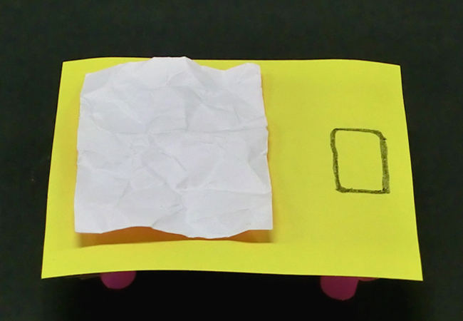 ①色がみを長方形に切り、まくらを描きます。