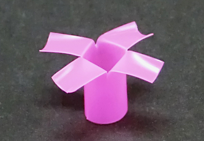 ③短く切ったストローに切り込みを入れて開きます。同じものを4個つくりましょう。