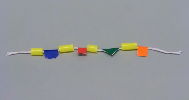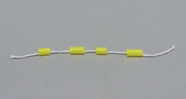 ①ストローを短く切り、たこ糸に通します。
