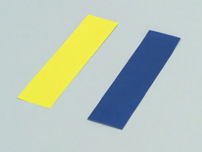 ② 色のついた面を表にして半分に折ります。