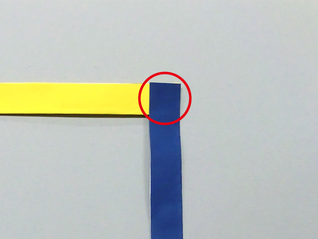 ②裏返して、粘着面を表にしたセロハンテープの輪を、色がみの角に貼ります。