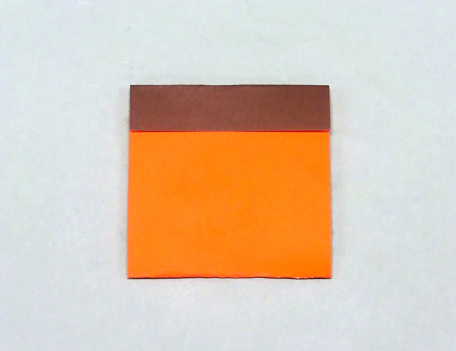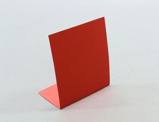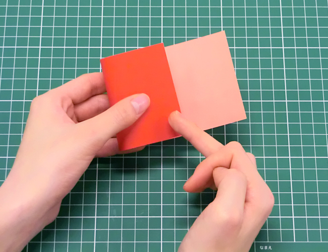 ①四角形に切った両面カラー工作紙を半分に折ります。