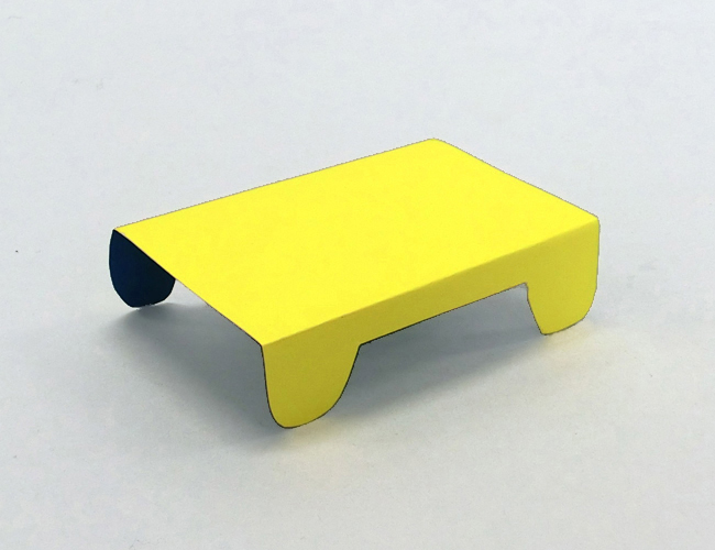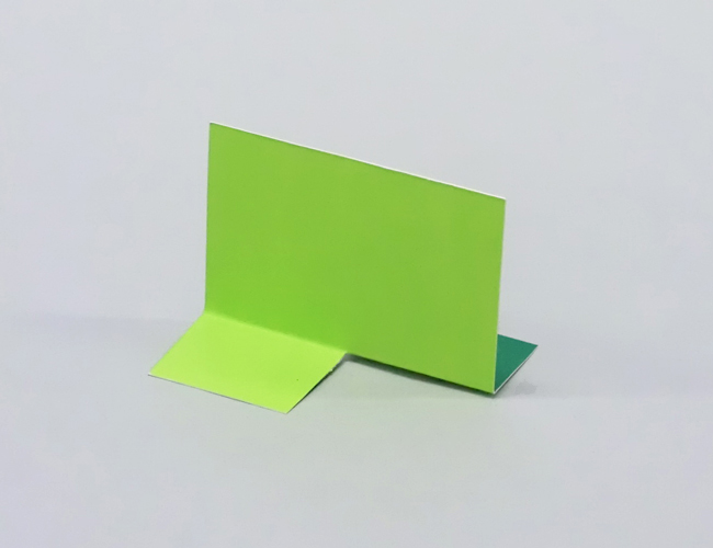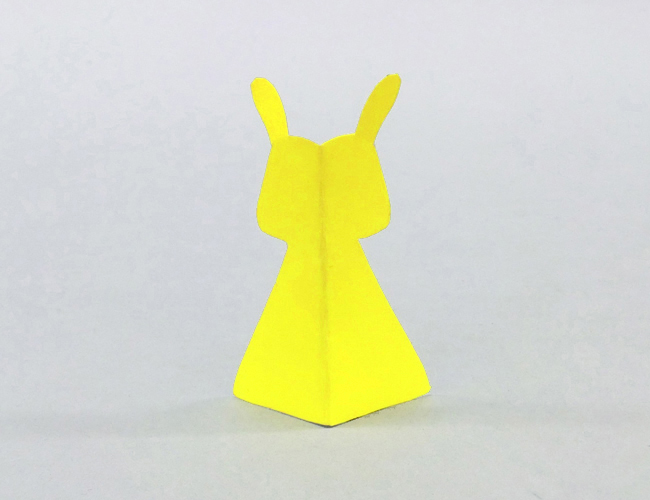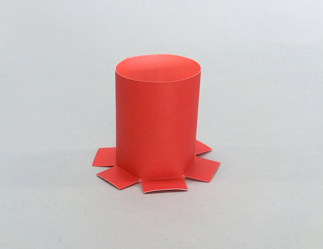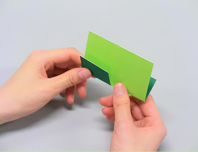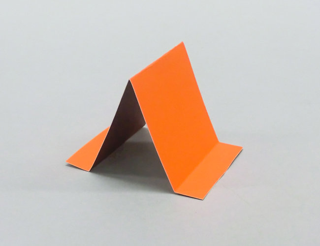④切り込みを入れて折り、足をつくることでしっかり立たせることができます。