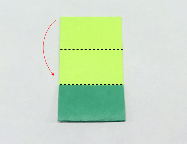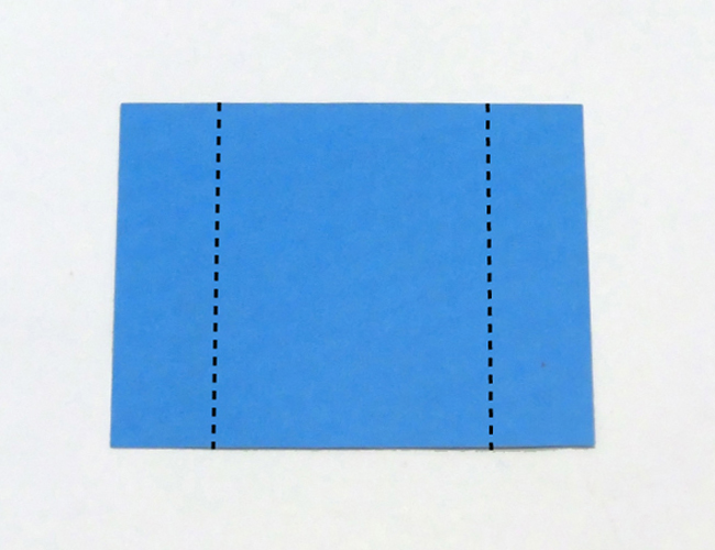 ①四角形に切った両面カラー工作紙の両端を点線にそって折ります。