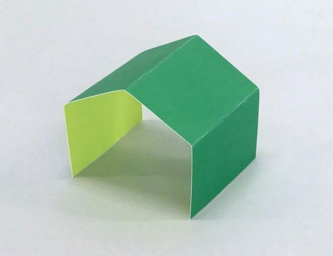 ①四角形に切った両面カラー工作紙を点線にそって折ります。