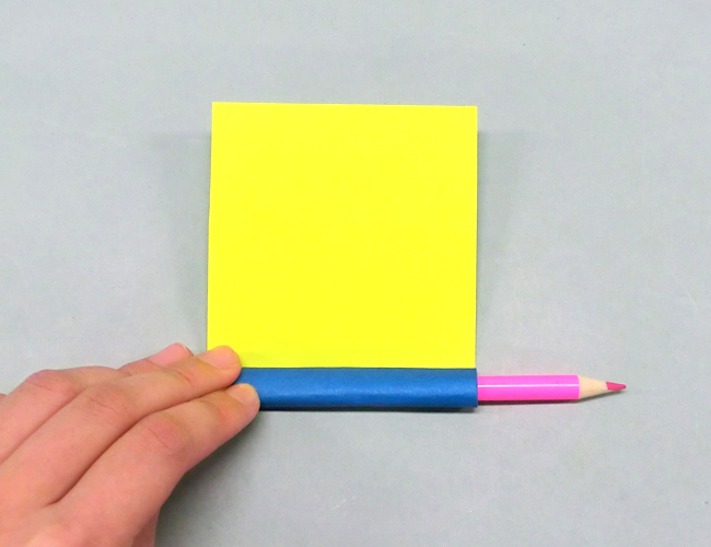 ①長方形に切った両面カラー工作紙を鉛筆などに巻きつけます。