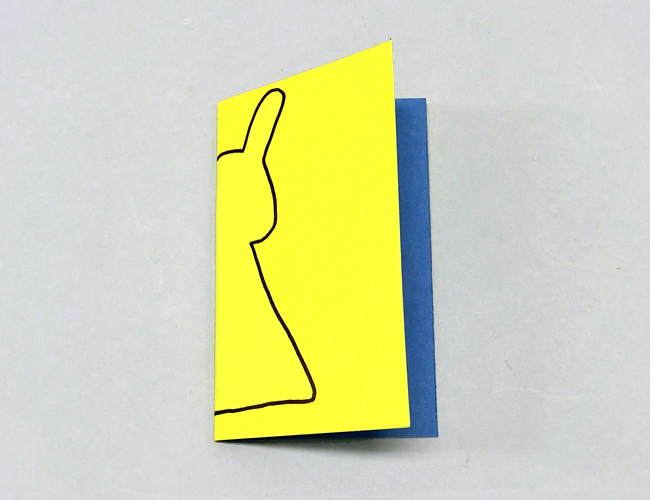 ③描いた絵にそってはさみで切り、少し開いて立たせます。