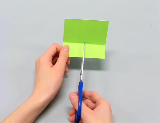 ②折り目をつけたら、開いた面の中心に切り込みを入れます。