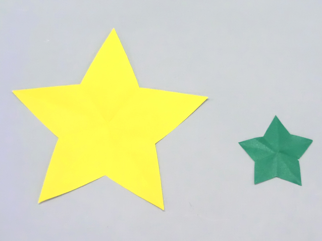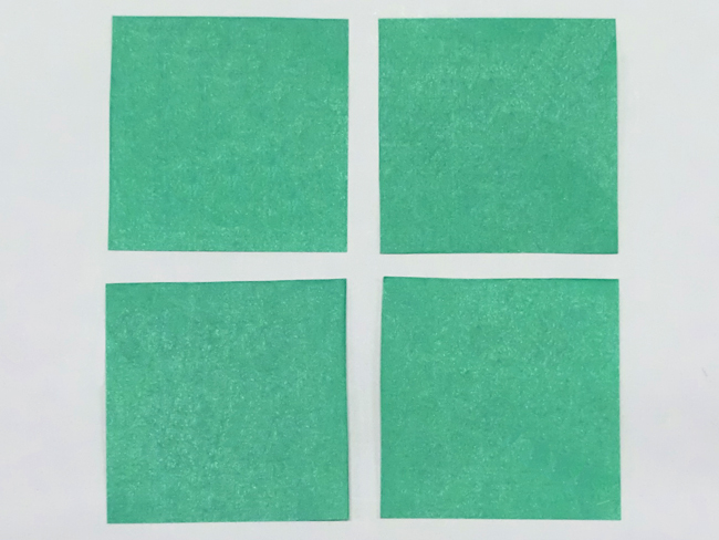 色がみを4つに切ると、小さな飾りをつくることができます。