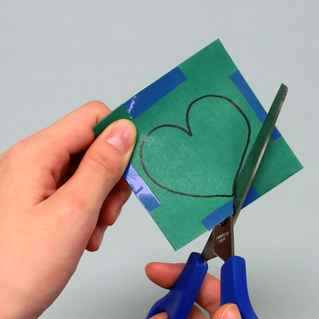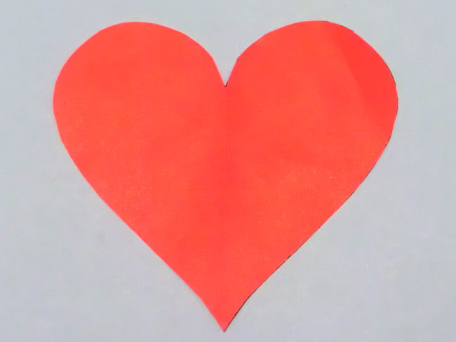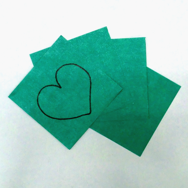 ①4枚の同じ大きさの紙を用意し、1枚にハートを描きます。