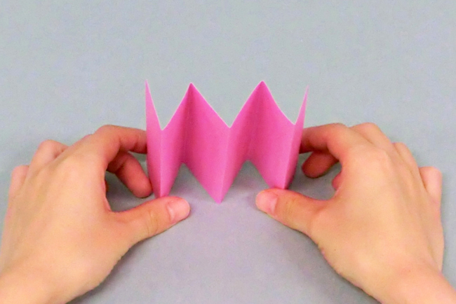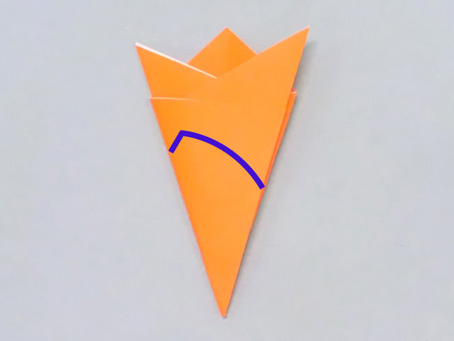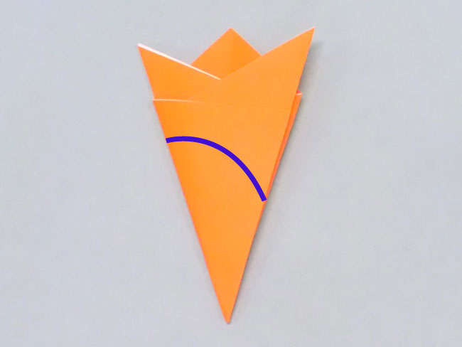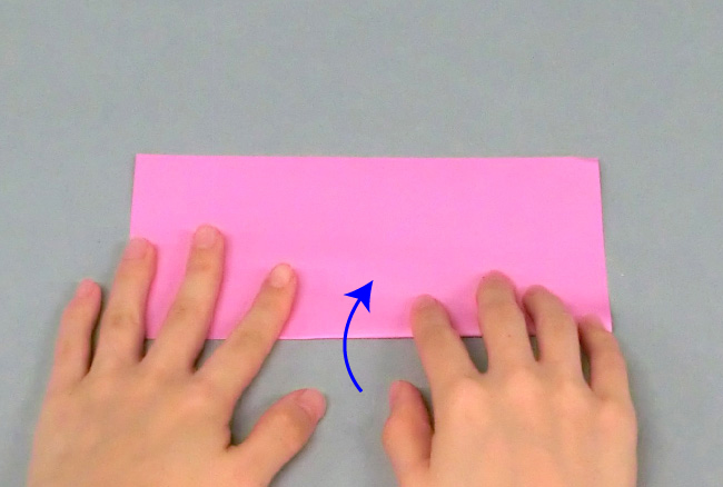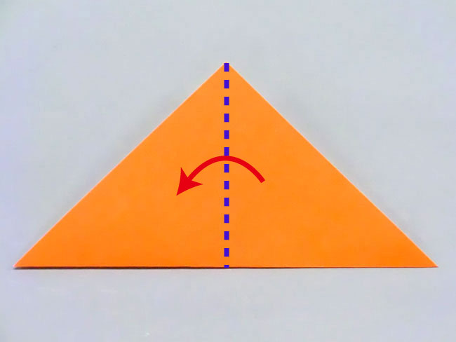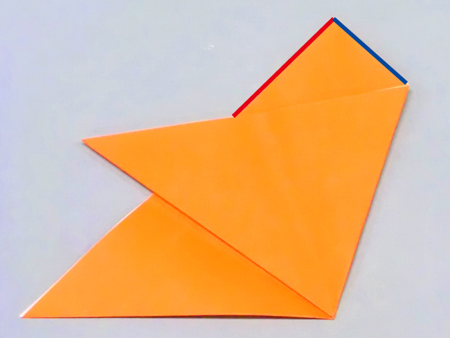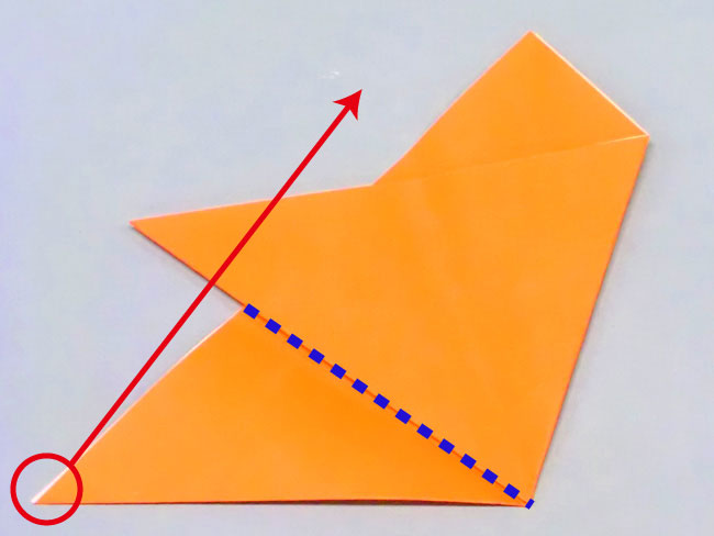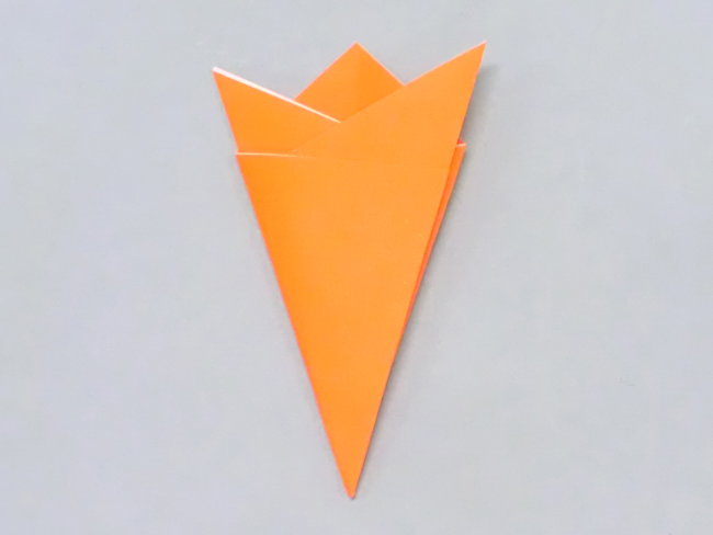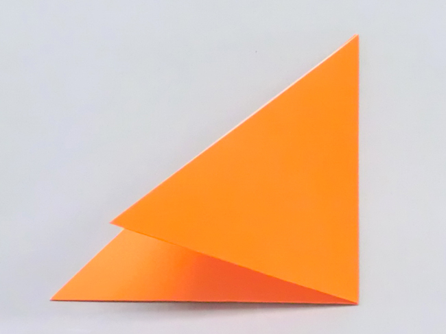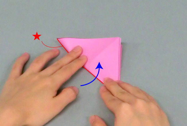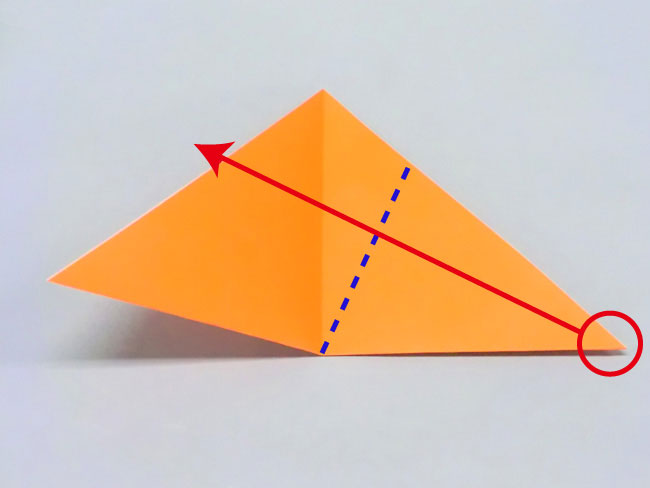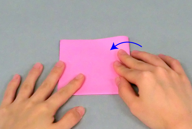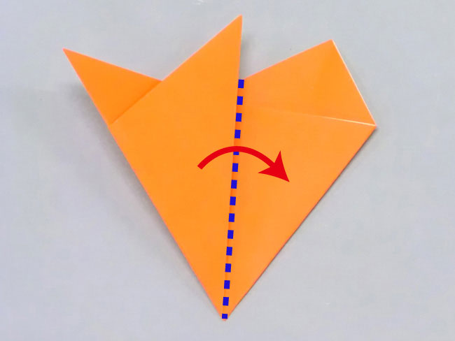 ②1回広げ、真ん中の折り目を中心にして、右端を斜め左に向かって折ります。