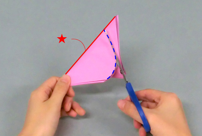 ④★で示した部分が写真の位置にくるように色がみを持ち、角を丸く切ります。