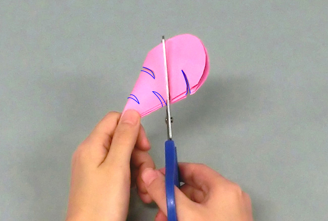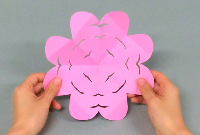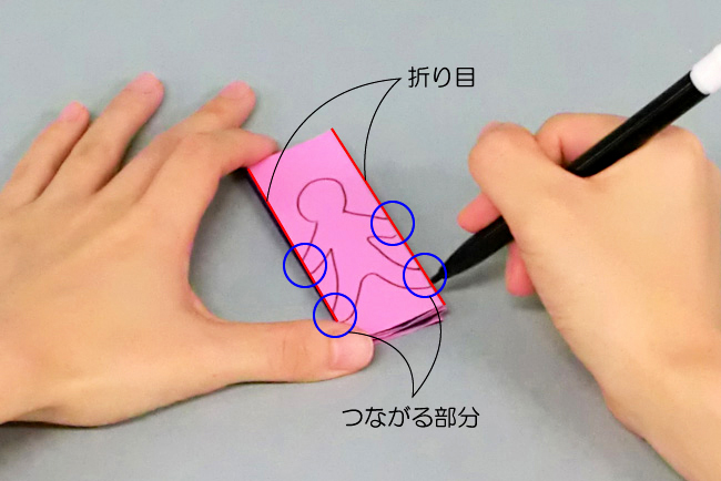 ③つながる部分が折り目にかかるようにして、自由に形を描きます。