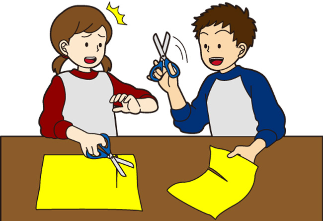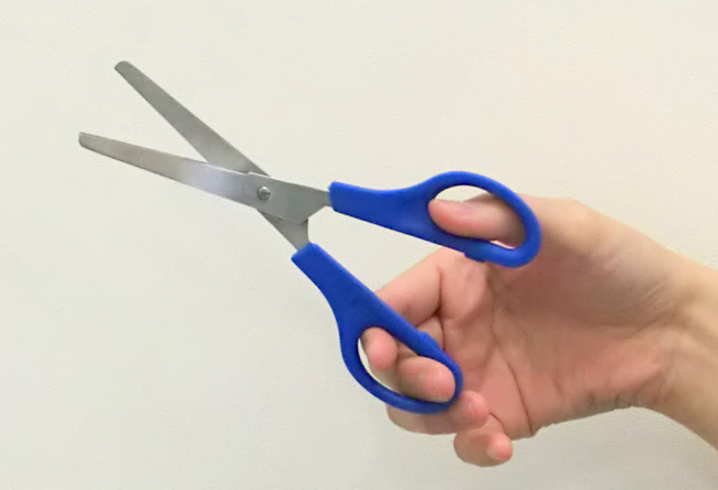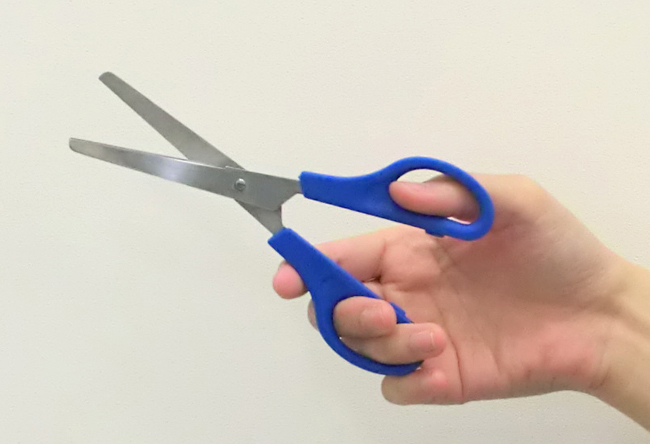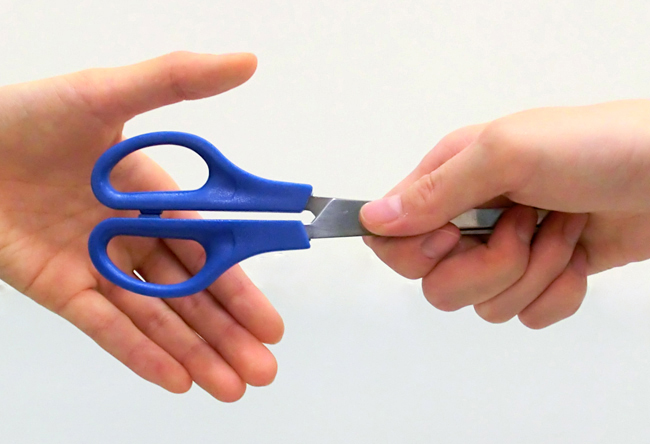はさみを他の人に渡すときは、閉じた刃の先を自分の手で握り、柄を相手に向けて渡します。