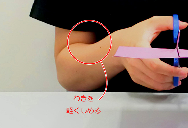 わきを軽くしめてはさみを安定させ、はさみが体の中心にくるように正面で持ちます。