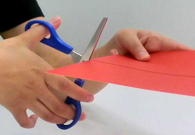 直線の切り方を例にして、はさみの正しい使い方を確認しましょう。