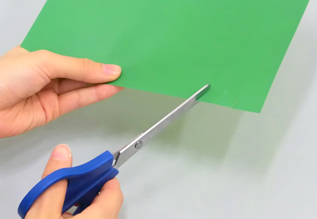 紙の端などの細かい部分は、はさみの刃の先を使って切りましょう。