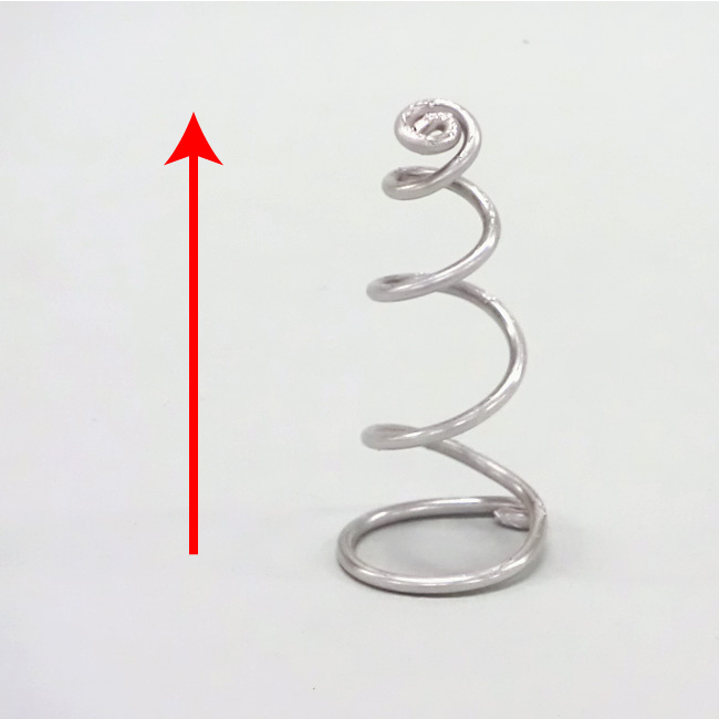指で針金の先を押さえ、丸い棒に針金を巻きつけると、らせんができます。