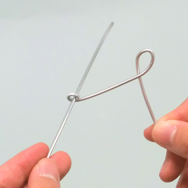 ②交差させた針金の両端に輪をつくり、同じ長さの針金を通します。