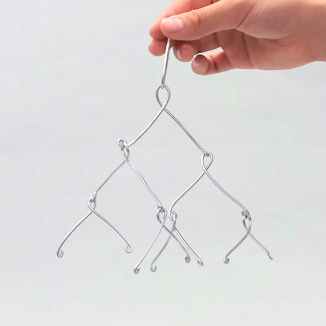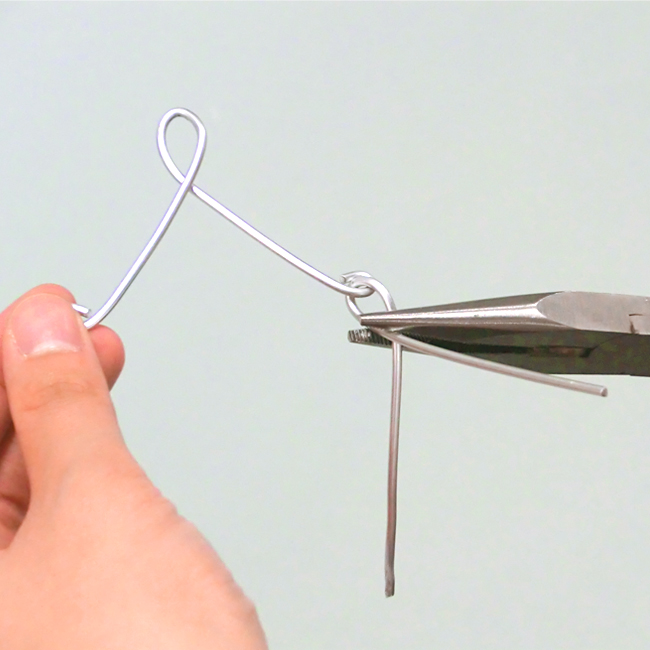 ③輪に通した針金を2つ折りにし、真ん中で交差させます。