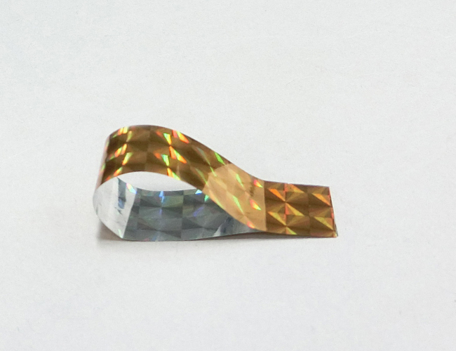 ①ホログラムシートはどちらの面でも飾りをつくることができます。はじめに、使う面を決めましょう。