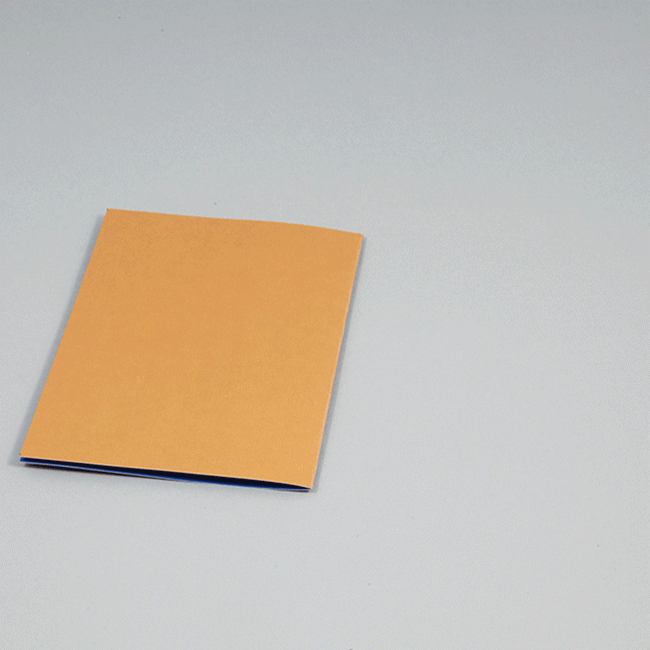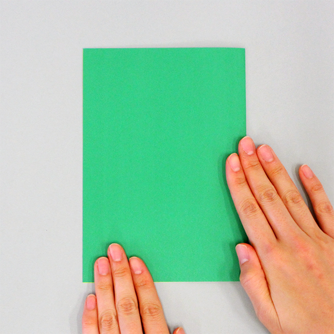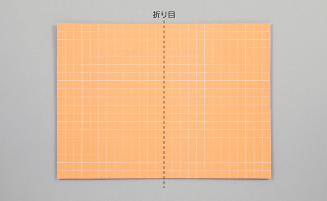 ① カラー方眼紙を二つ折りにし、しっかりと折り目を付けます。