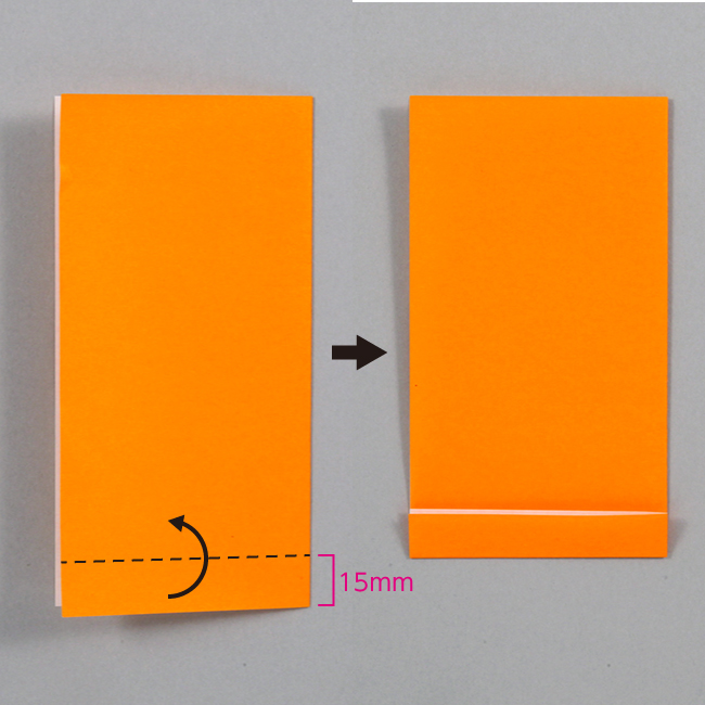 ② 下から15mmの位置で折り返し、のりしろを作ります。