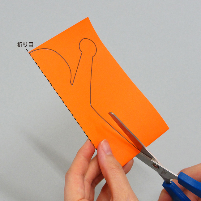 ※対称的な形を作るときは、紙を開かずに切ります。このとき折り目が形の中央になるようにしましょう。