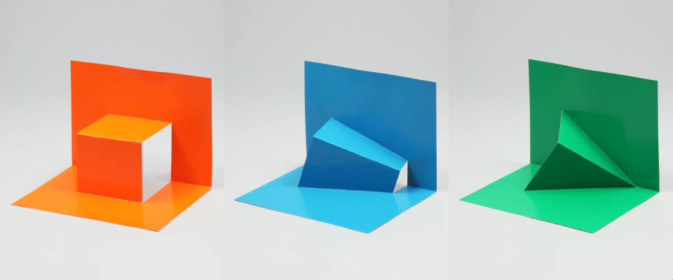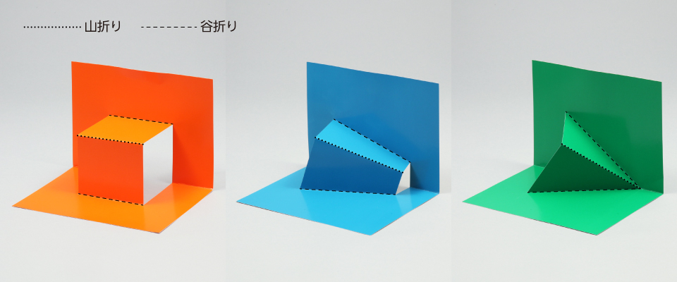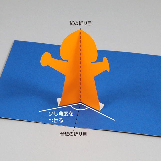 台紙に切り込みを入れて折ると、開いたときに立体的な形が飛び出します。