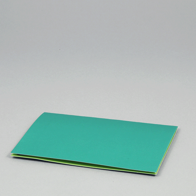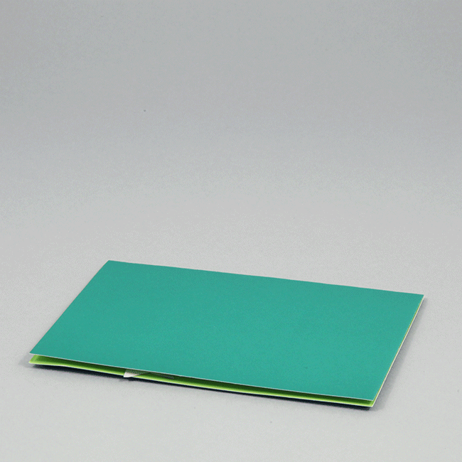 ⑥ 開いた台紙に貼り、1度台紙を閉じてしっかりと接着すると完成です。