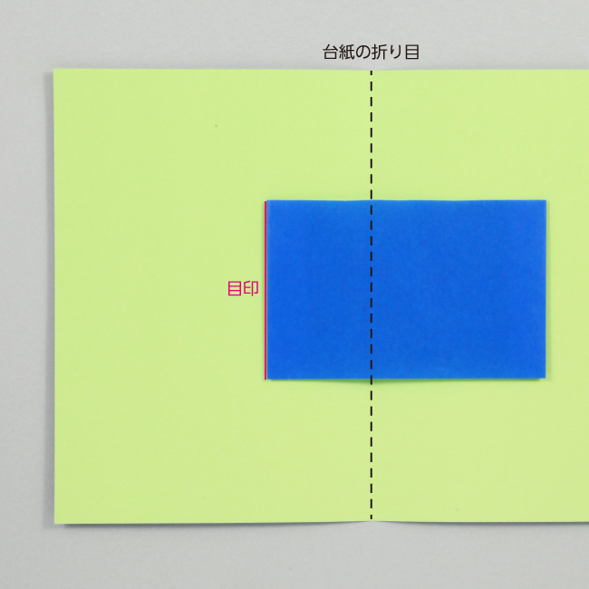 ⑥ ②で付けた目印に合わせて、台紙に貼ります。