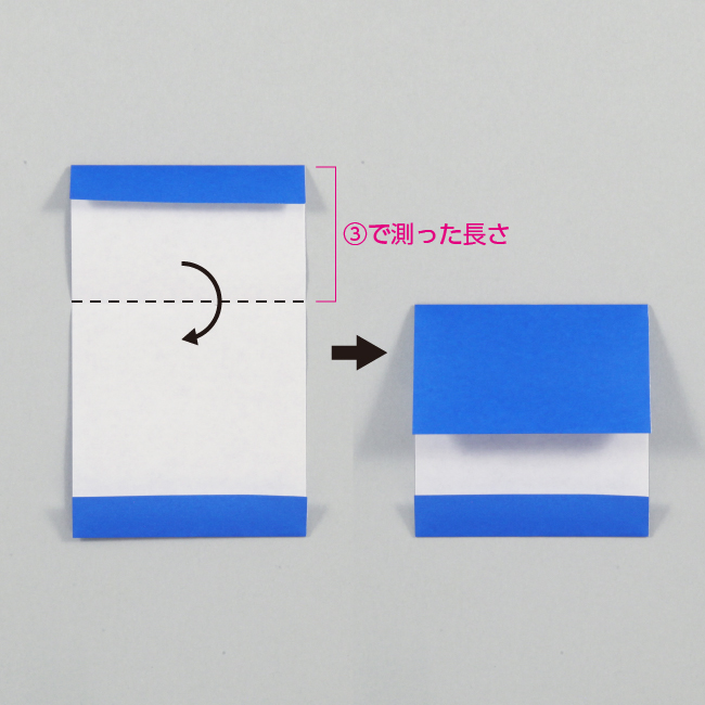 ④ ①の紙を端から③で測った長さの位置で折り返します。