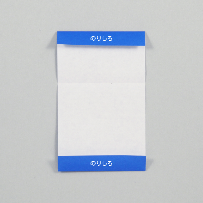 ① 四角に切った紙を用意し、上下とも1.5cmの位置で折り返し、のりしろを作ります。