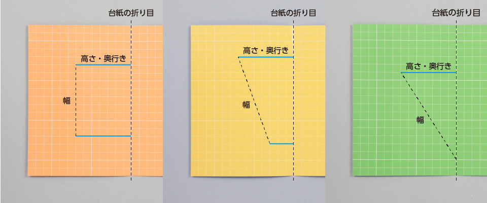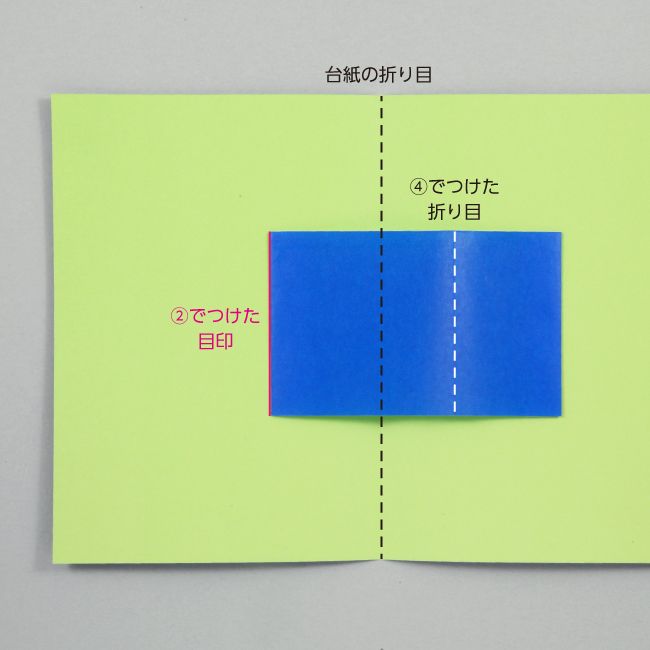 ⑤ 台紙を開き、④で折った部分を内側に折ります。